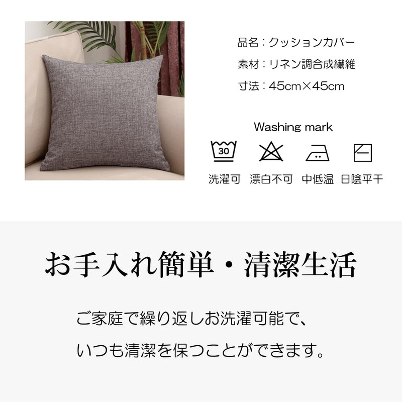 - (Basic Information) Size: 17.7 x 17.7 inches (45 x 45 cm); Material: Linen weave pattern (synthetic fiber); Other: With fully open zipper