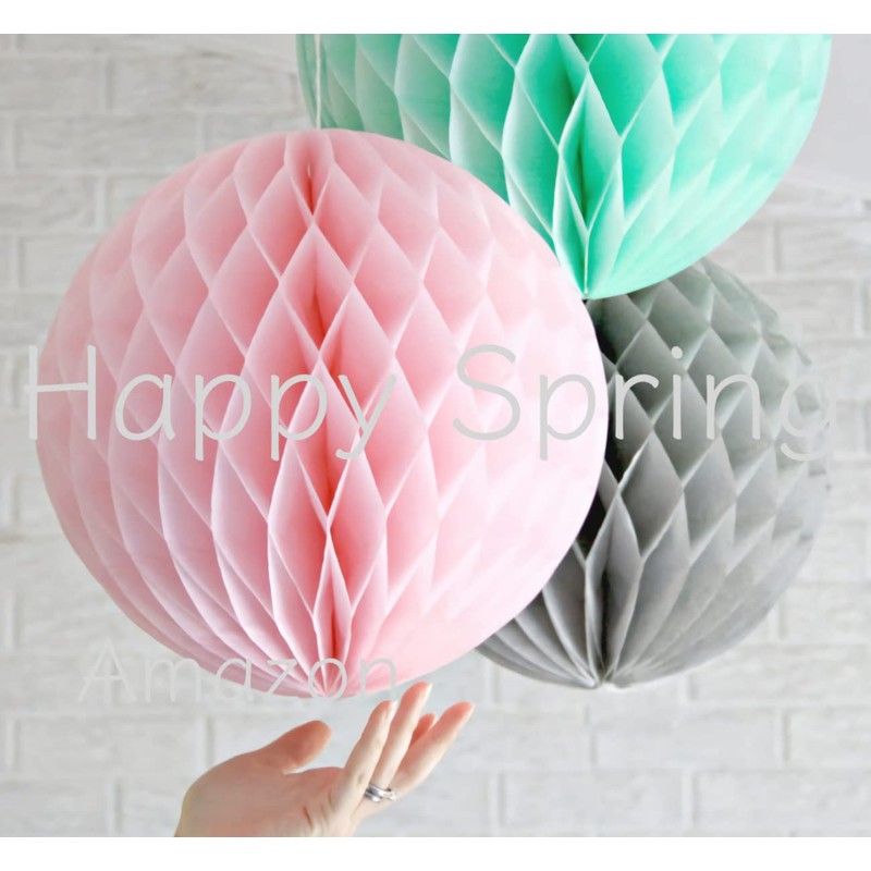 Happy Spring Honeycomb Ball Set of 8 Party Decorations (3.9 inches (10 cm), Light Blue