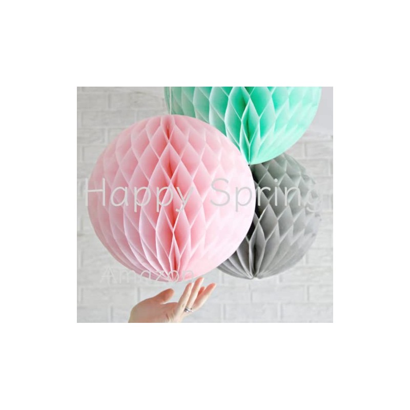 • Set of 8 Honeycomb Balls, Peach Color, 5.9 inches (15 cm)