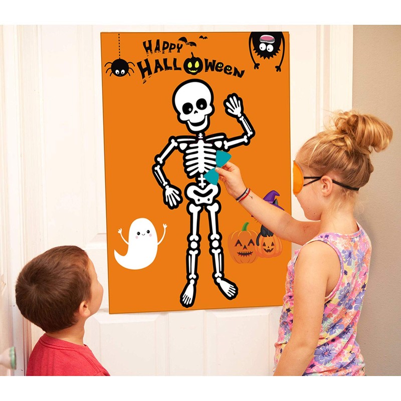 PIN THE BOW TIE ON MR.BONE GAME is a great gift for kids to use in the Halloween party, birthday party, Halloween party decorations, classroom party and more. It will bring a huge hit to their parties and all guests will enjoy with pin game.