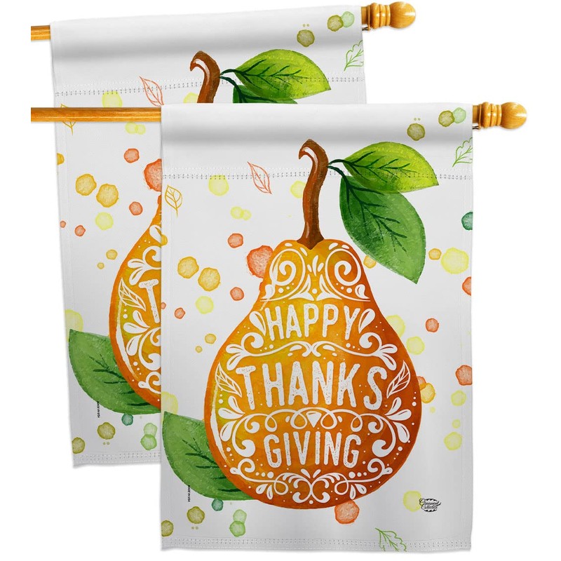 Happy Thanks Giving House Flag - 2 pcs Pack Fall Thanksgiving Turkey Give Gobble Pumpkin Season Autumntime Cornucopia - Decoration Banner Small Garden Yard Gift Double-Sided Made In USA 28 X 40