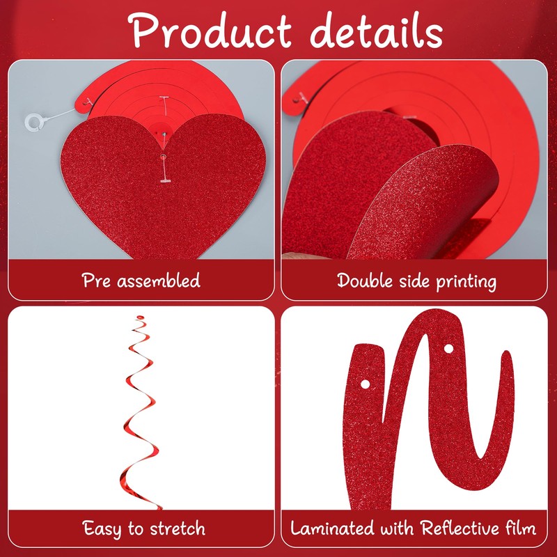 - Romantic design: our valentine’s day banner with heart hanging swirls could create an unforgettable memory to your friends, the classical colors of red and pink will bring more sweet atmosphere to your decoration, these delicate valentines garland set will give a big surprise to your lover.