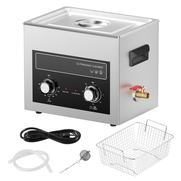 Happybuy 10L Ultrasonic Cleaner with Heater, Timer & Basket, 240W Sonic Cavitation Machine for Lab Tools, Metal Parts, Carburetor, Brass, Auto & Engine Parts