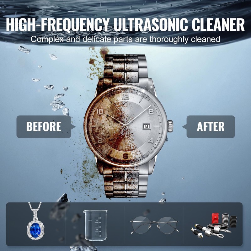 • High-Performance Cleaning:The Happybuy ultrasonic cleaner operates at a 40kHz frequency, generating millions of microscopic bubbles that burst to release cleaning energy. This ensures deep cleaning of intricate parts, removing tough stains from every surface.
