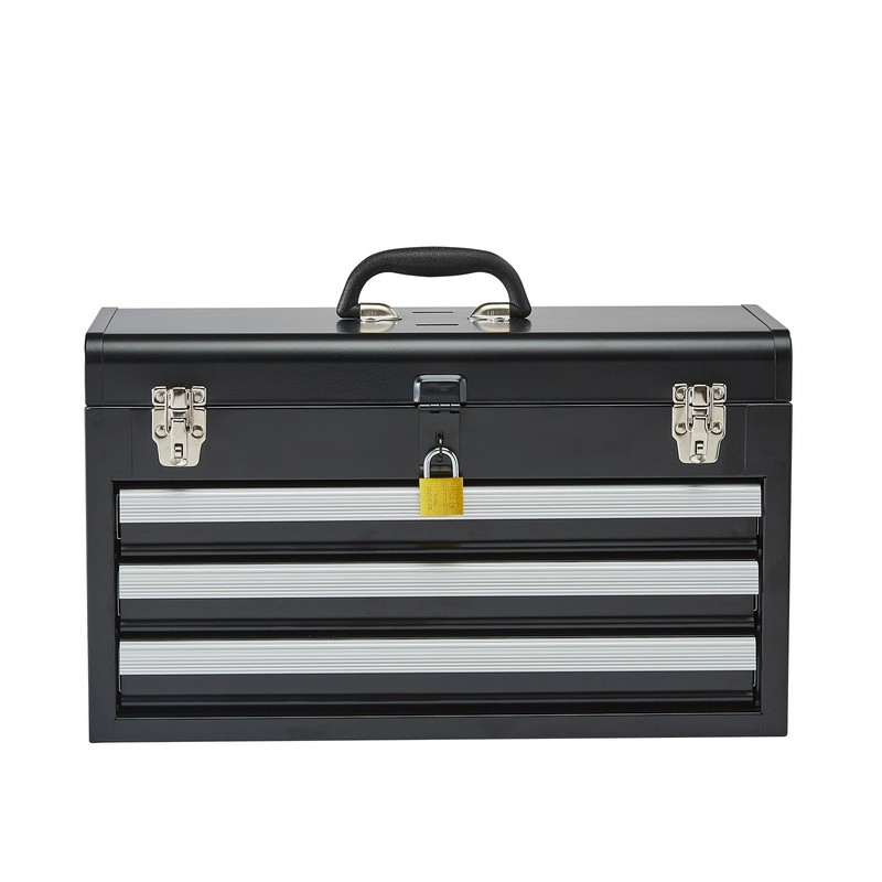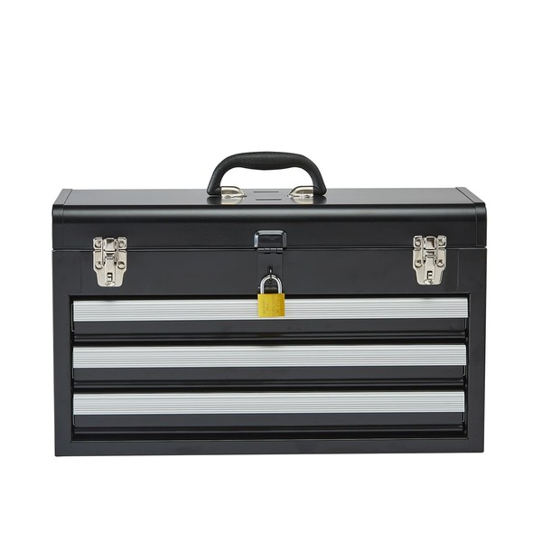 Happybuy 20.5-inch Portable Metal Tool Box, 3-Drawer Small Tool Chest with EVA Liners, Lockable Ball Bearing Slide Drawers & Powder Coated Finish, Versatile Tool Organizer