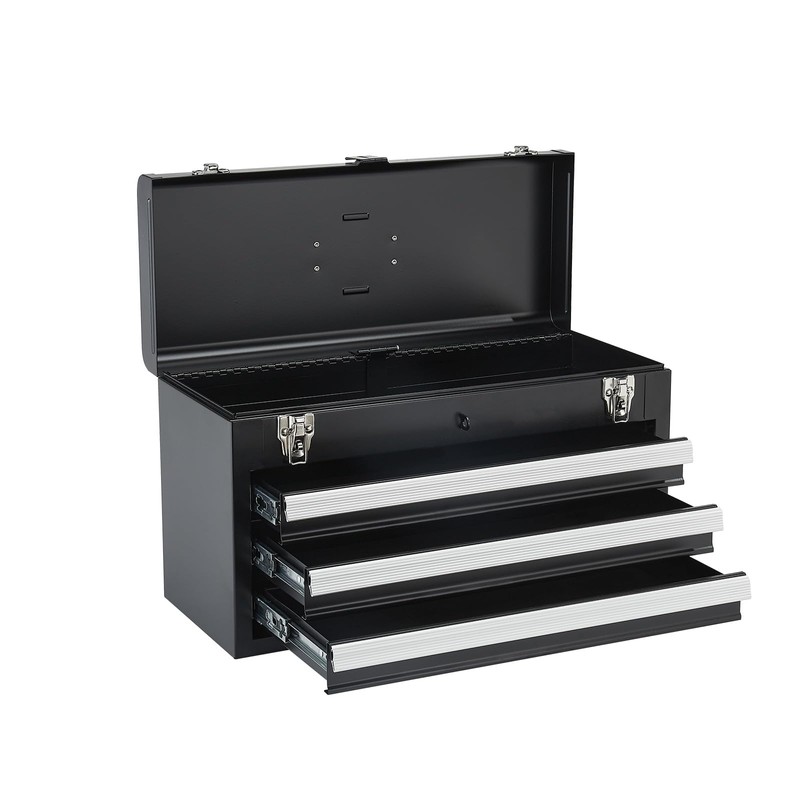 - Ample Storage Space: The Happybuy metal tool box offers 20.5 x 8.6 x 12 inches of storage with a top box (19.9 x 8.2 x 2.1 inches) and three drawers (17.6 x 7.36 x 1.73 inches), each supporting up to 15 lbs, providing ample space for your tools and equipment.