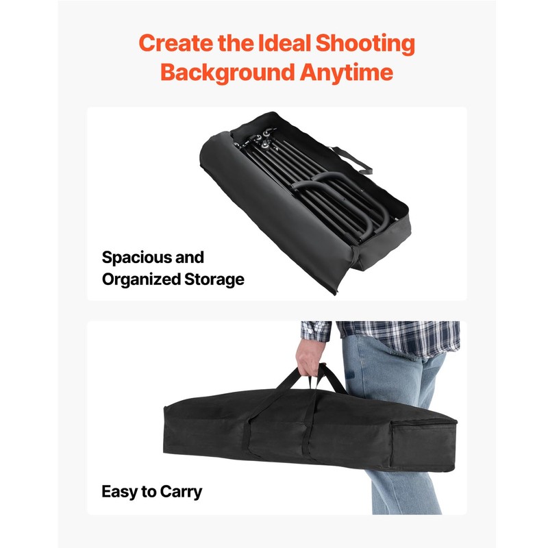 - Convenient Portability: The included carrying bag and spring-loaded pins ensure quick assembly and disassembly without the need for tools. It’s easy to transport, making it ideal for setting up backdrops on the go.