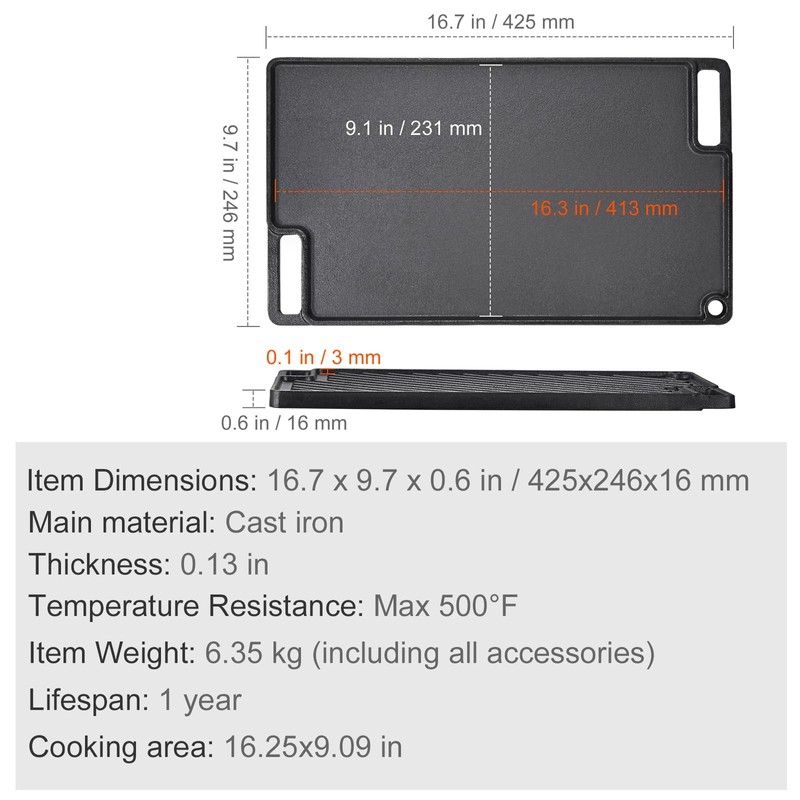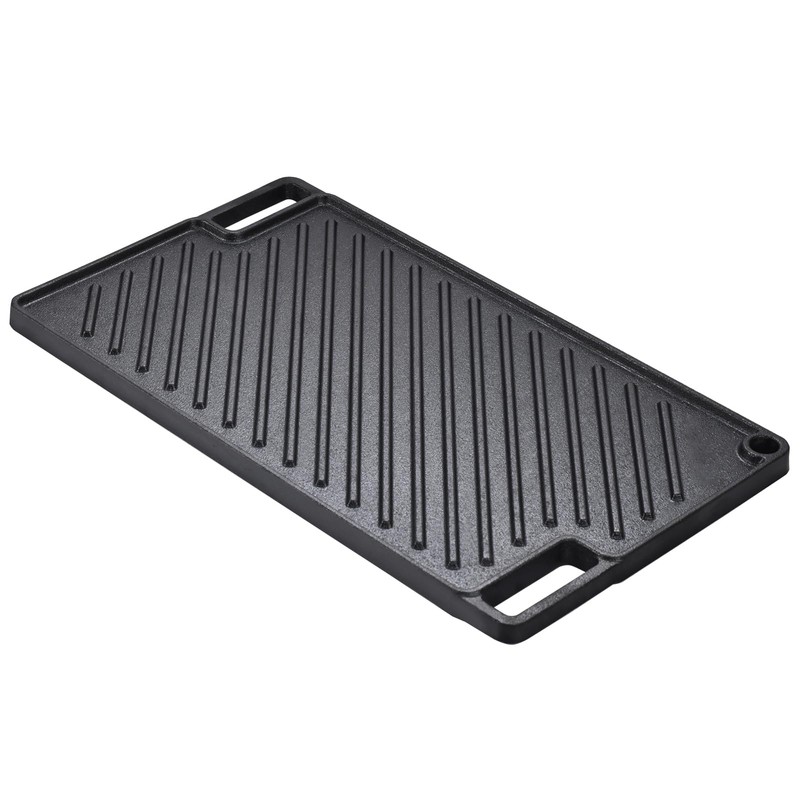 Happybuy Reversible Cast Iron Grill/Griddle, 9.7"x16.7", Pre-Seasoned for Family, Non-Stick Double Burner Pan with Handles, Ideal for BBQ and Gas Grill, Black