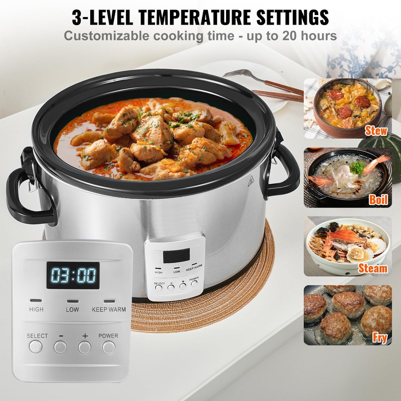 • Master Every Meal: With 3 heat settings and 8QT capacity for 10-12 servings, it's perfect for various cooking methods.