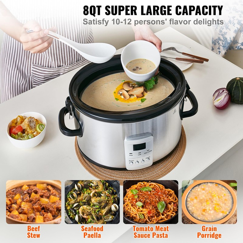 Happybuy Slow Cooker, 8QT, 320W, 3-Level Heat Settings, 20 Hours Max Timer, Digital, Locking Lid, Ceramic Inner Pot, Home/Commercial