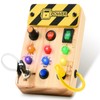 - Safe wooden toy: the main body is made of natural wood and all parts are finely polished to ensure a smooth surface. The busy board has no sharp edges or small parts that can easily loosen, and the battery protection cover screws on, so your child does not have to worry about touching the circuits. Note: Requires 2 x AAA batteries, not included.