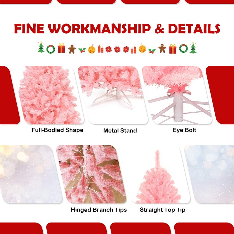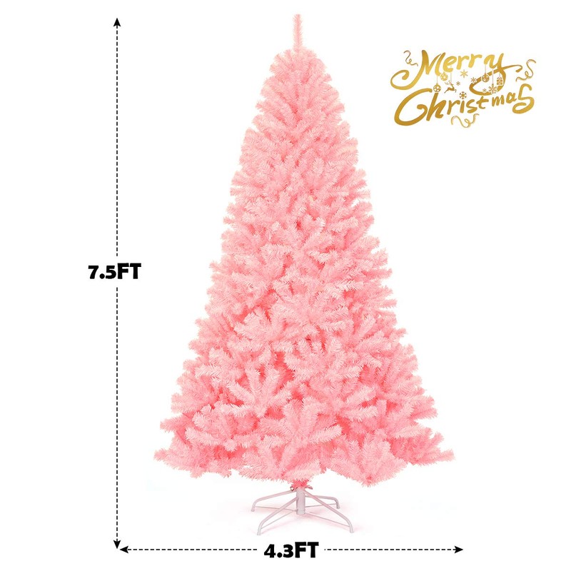HAPPYGRILL 7.5FT Artificial Pink Christmas Tree with Stand New PVC Material Rich Thicken Tips Christmas Festival Decoration