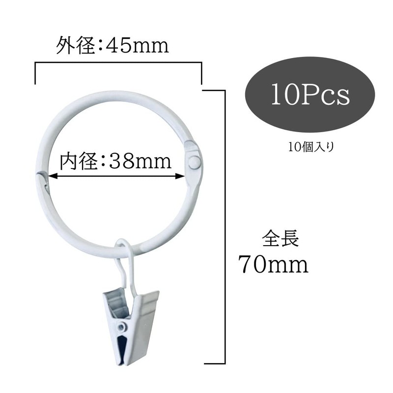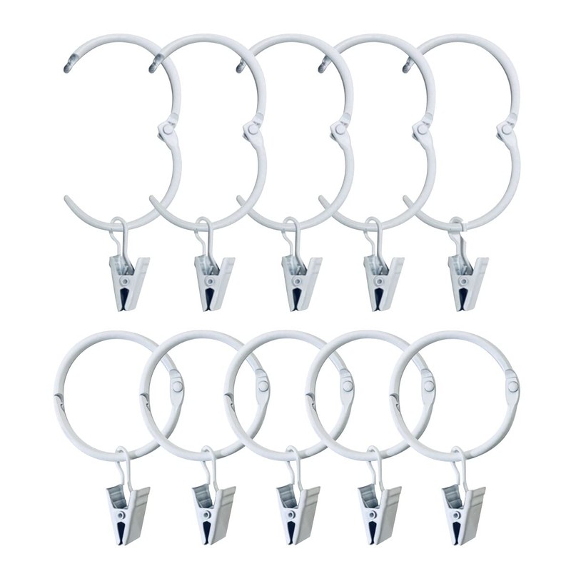 HappyHome Curtain Rings Curtain Hooks 38mm Metal Clip Ring Runner Easy Installation Pack of 10 (White)