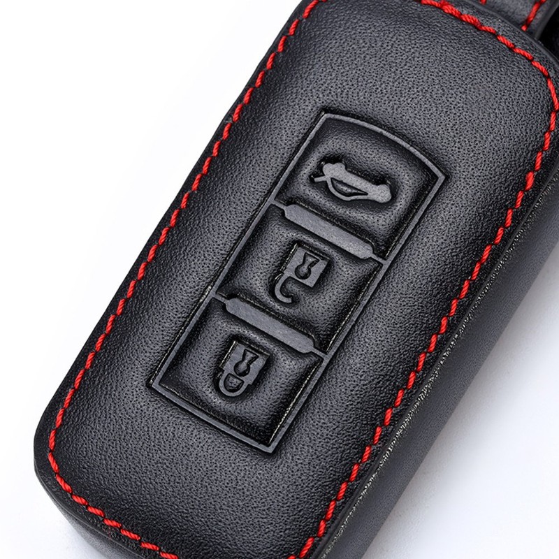 Happyit Leather Car Key Cover Cases Car keychain for Mitsubishi Outlander Lancer 10 EX Pajero Sport ASX RVR L200 3 Buttons Smart Key