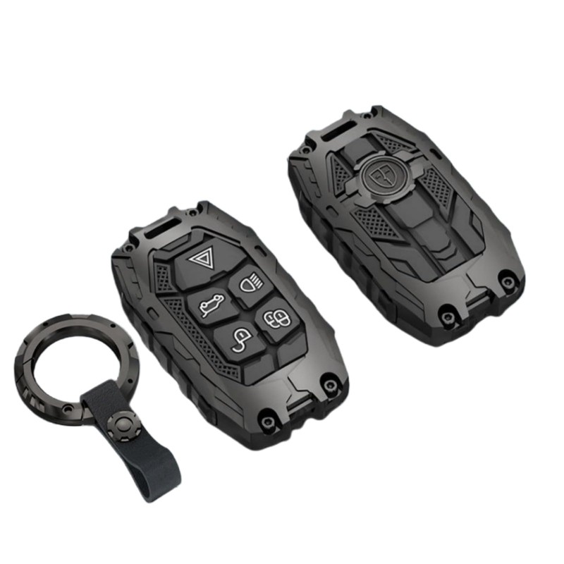 Happyit Zinc Alloy Car Key Case Cover for Land Rover Discovery 4 Range Rover Sport Evoque Vogue LR2 LR4 Für Jaguar Freelander XFL XE XJ 5 Button (Black+Round Buckle)