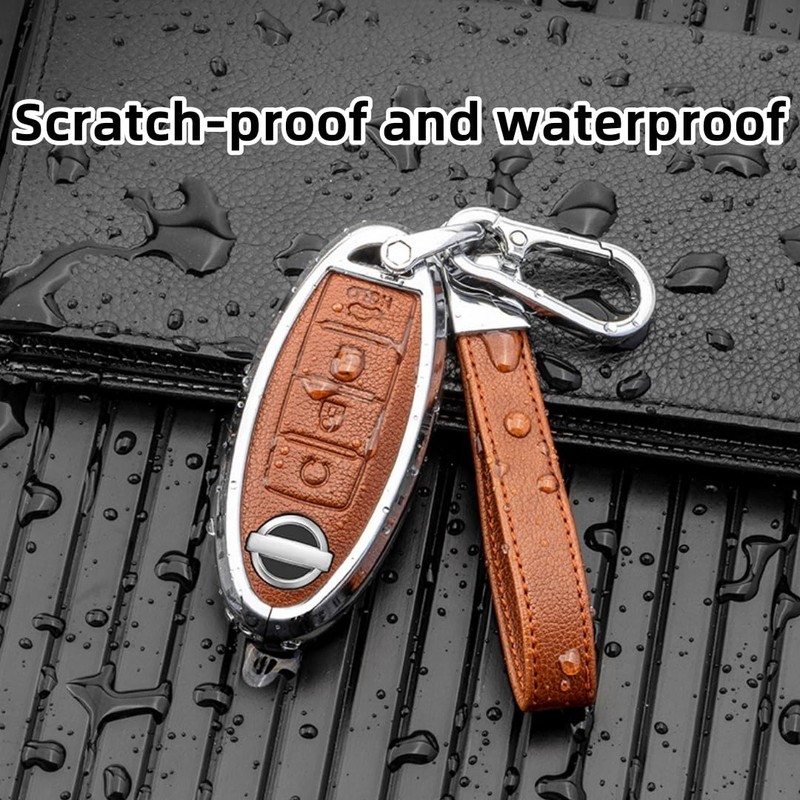 Happyit Zinc Alloy Leather Car Key Cover Cases for Nissan Cube Juke Versa Note X-Trail Qashaqai Sunny Juke Altima TIIDA Murano Maxima 2/3/4 Buttons (Brown+2B)