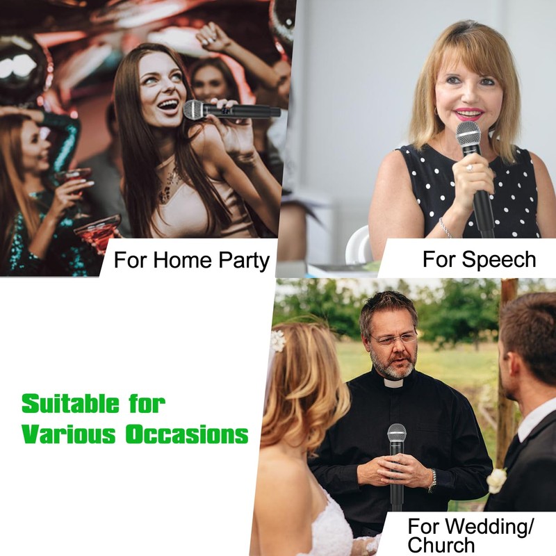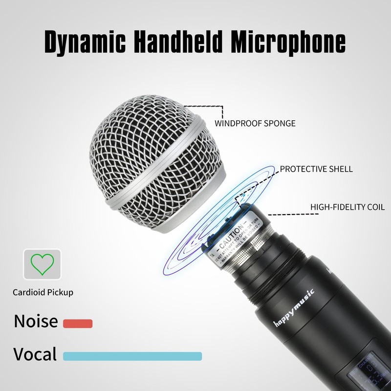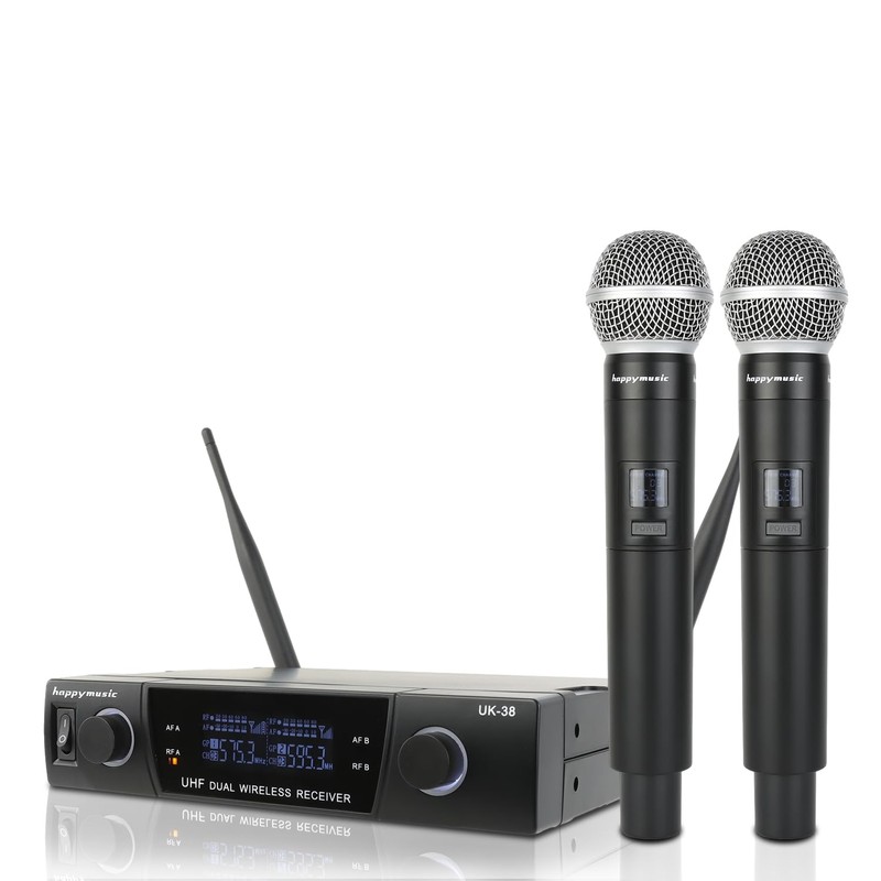 happymusic Professional UHF 2 Channel Wireless Microphone System, Cordless Handheld Mic Set, 150ft Range Perfect for DJ, Church, Wedding, Event, Gigs, Singing, Home Karaoke, Black (UK-38)