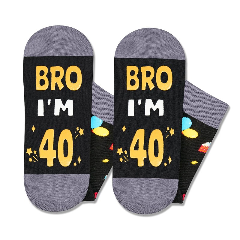 - 40 YEARS BIRTHDAY GIFTS: Celebrate the joyous milestone of turning forty with our stylish "BRO I’M 40" socks! This thoughtful gift is ideal for your bro's special day. Make this occasion unforgettable with our distinctive, premium-quality sock presents.