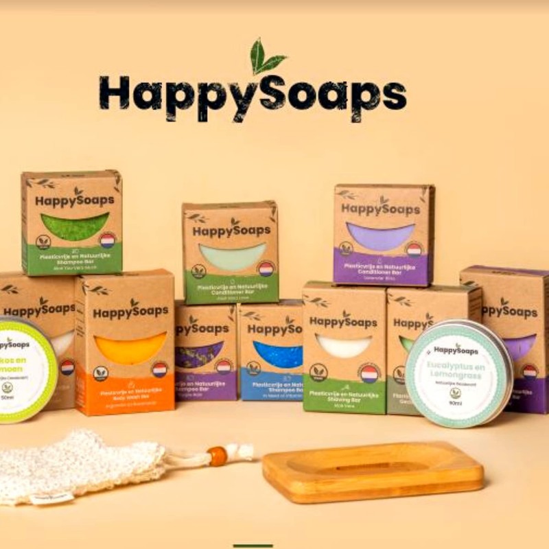 - 100% plastic free. HappySoaps shampoo bars are 100% (micro) plastic free, vegan and natural. The shampoo bars are all handmade with love. Not a single gram of plastic is used during production, transport and storage.