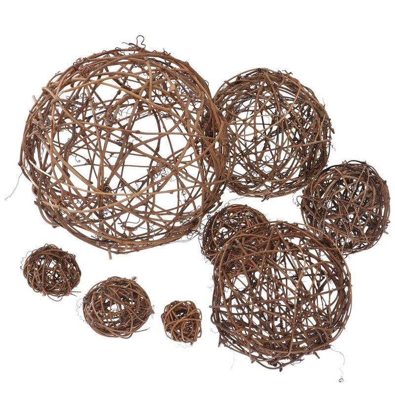 Happyyami 8 Pieces Rattan Balls Rattan Balls Craft Vase Filler Straw Wicker Rattan Ball Scatter Decoration Balls Birthday Party Decoration Rabbit Parrot Chew Toy 5/6/8/10/12/15/20 cm