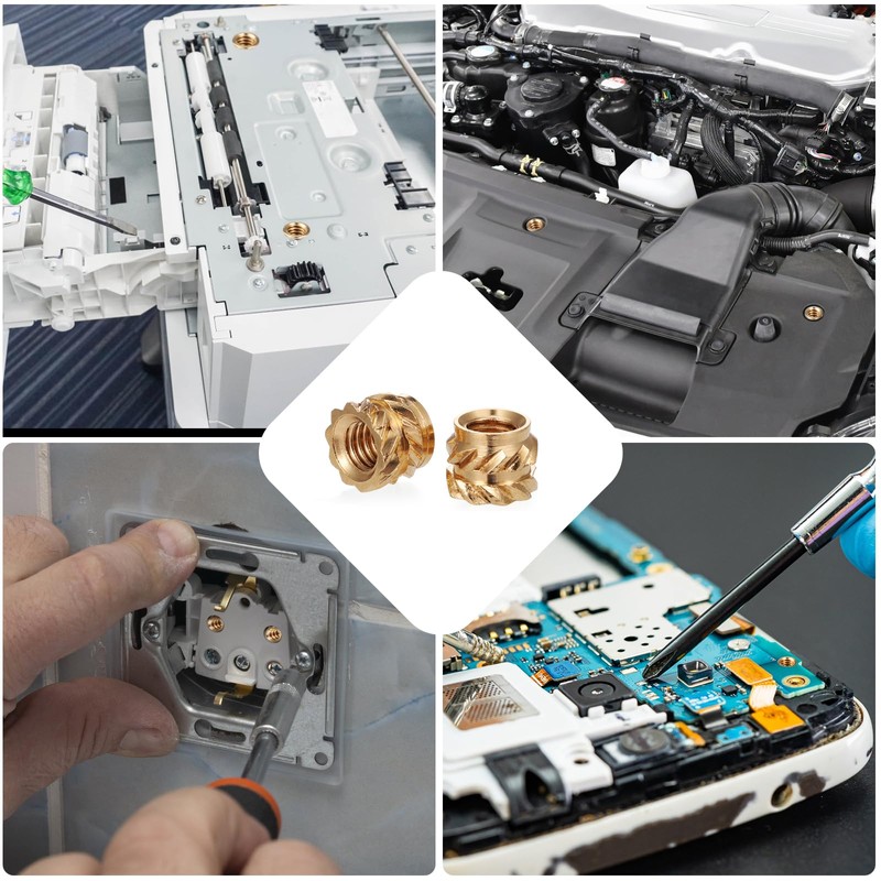 • MehrfachverwendungDie Einpressmuttern sind im Leben weit verbreitet und eignen sich fr 3D-Drucker, Digitalkameras, Computer, Kunststoff-Autoteile, Leiterplattenmontage, elektronische Produkte und die meisten Kunststoffbefestigungen usw.