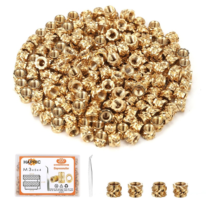 Hapric 200 Stck Gewindeeinsatz, M3 Gewindeeinsatz 3D Druck Einschmelzgewinde Einpressmuttern Gewindebuchse Threaded Inserts fr 3D Druckteile Automobil Kunststoffschale