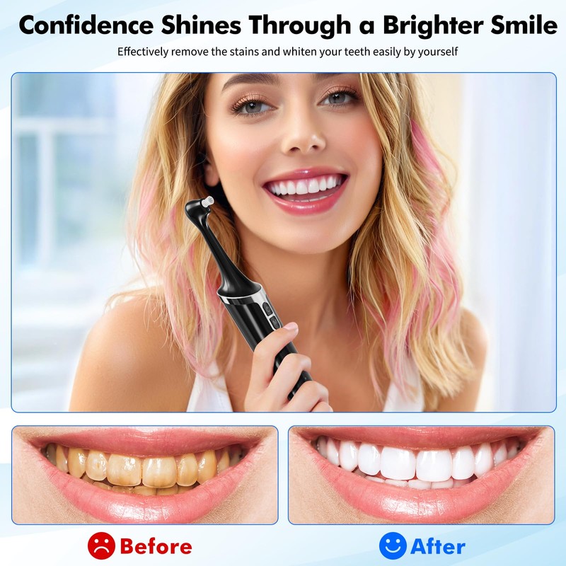 - [Boost Confidence with Effortless Smile Care] Achieve a visibly brighter, stain-free smile in minutes! Our teeth stain remover combines professional-grade cleaning heads with user-friendly design, gently removing plaque, surface stains, and discoloration. Perfect for home or travel, its ergonomic handle and intuitive controls make it easy for anyone to use—no dental expertise needed. Ideal for daily maintenance or pre-event touch-ups, it’s your secret weapon for a radiant, camera-ready smile!