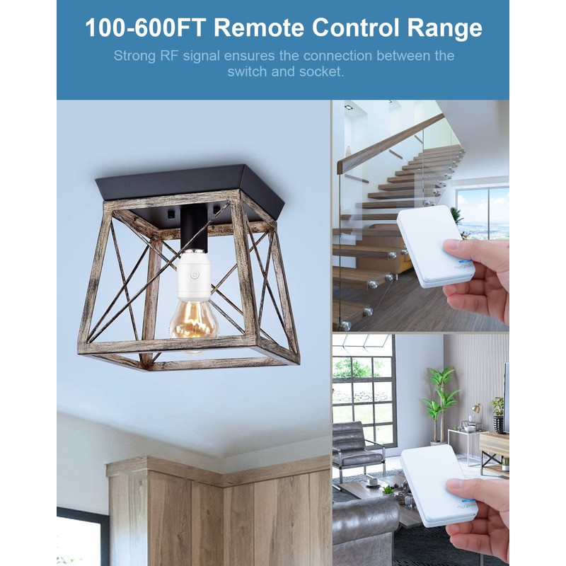 • 600FT RF Range Control: This remote control light socket can remotely control any light in your home at the push of a button. Wireless range is up to 600 feet outdoors and 100 feet indoors, which is enough to go through walls and windows, without interfering with other electronics. You can control the switch of lights from anywhere in your home, making your life more convenient and efficient.