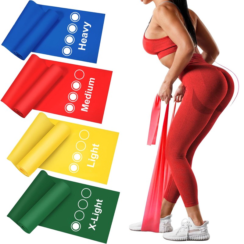 Haquno Elastic Fitness Bands [Set of 4] 1.8 m Elastic Muscle Rubbers with 4 Resistance Levels, Pilates, Strength, Muscle Training and Training, Elastic Bands for Men and Women