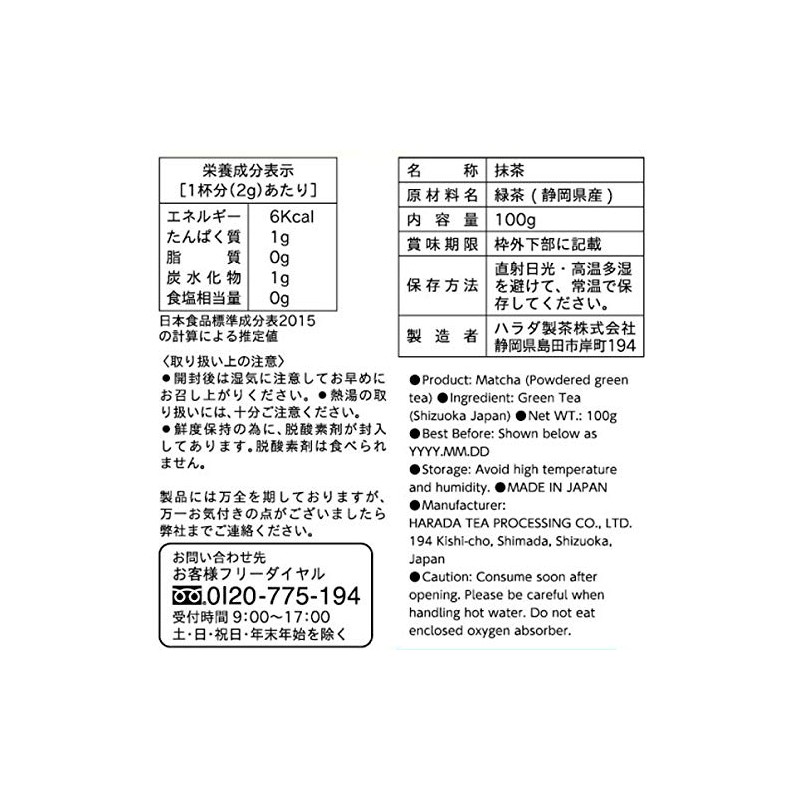 - Ingredients: Green tea (produced in Shizuoka Prefecture)