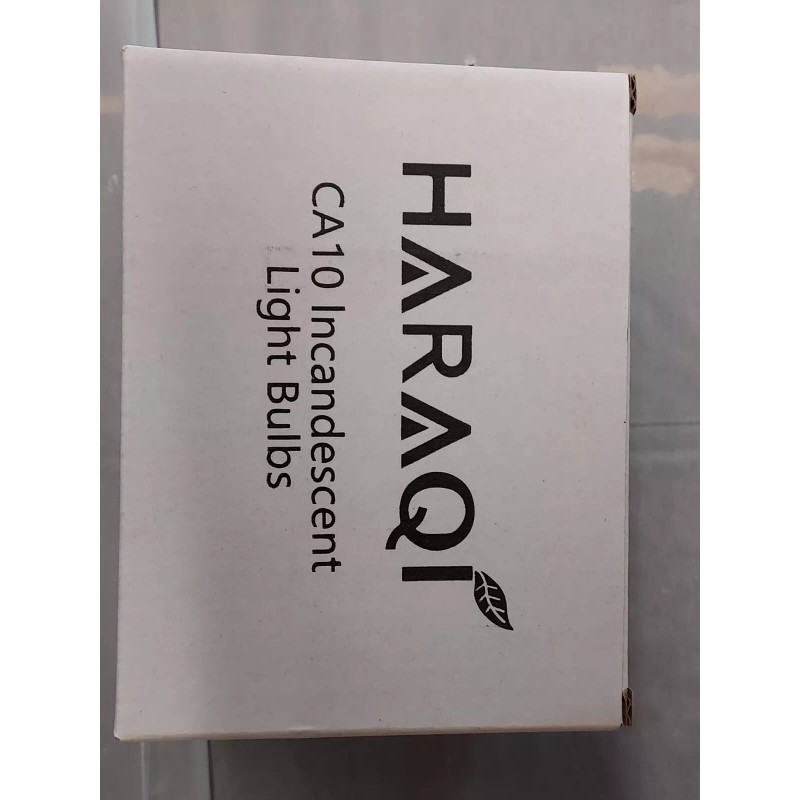 Illuminate your space with these 12 pack 60w 120V CA10 E12 C32 flame tip clear light bulbs. Designed with a brand name of Haraqi, these bulbs have a voltage of 120V and a bulb wattage of 40W, providing a bright and clear output. The bulb shape code is CA10 and the finish is clear, giving a classic and elegant look to any room.