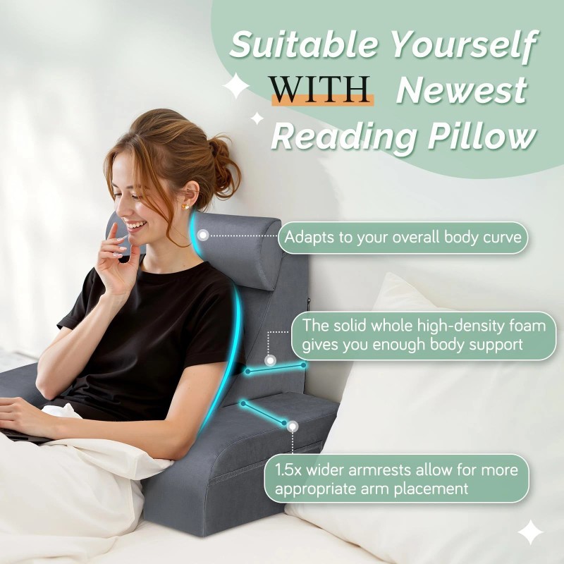 WHOLE PIECE SUPPORTIVE FOAM: Still using shredded foam reading pillow? Still uncomfortable with the uneven grainy surface? Please try our bed reading pillow filled with 25D whole piece foam, which is more supportive than ordinary reading pillow and will not deform, giving you just the right comfort