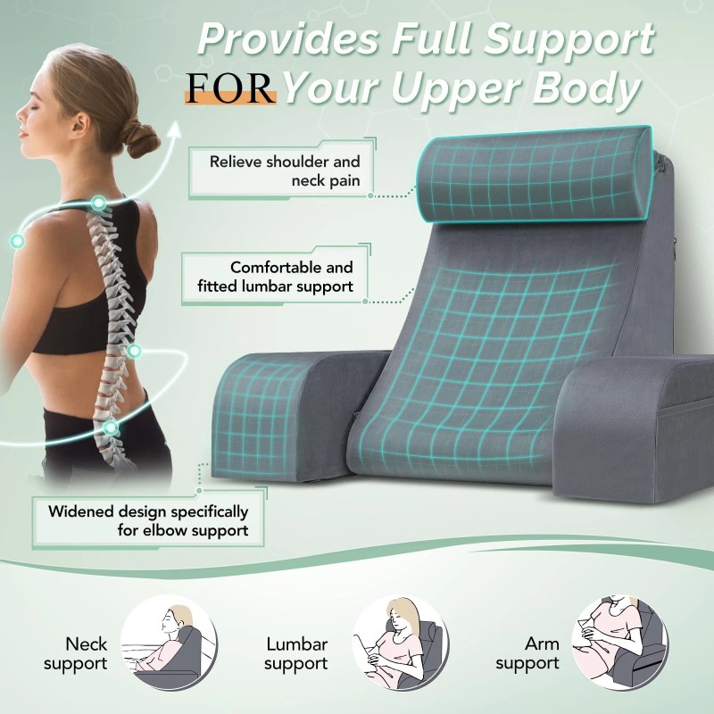Harborest Reading Pillow with Removable Arms Back Pillow for Bed Sitting Up Filled with...