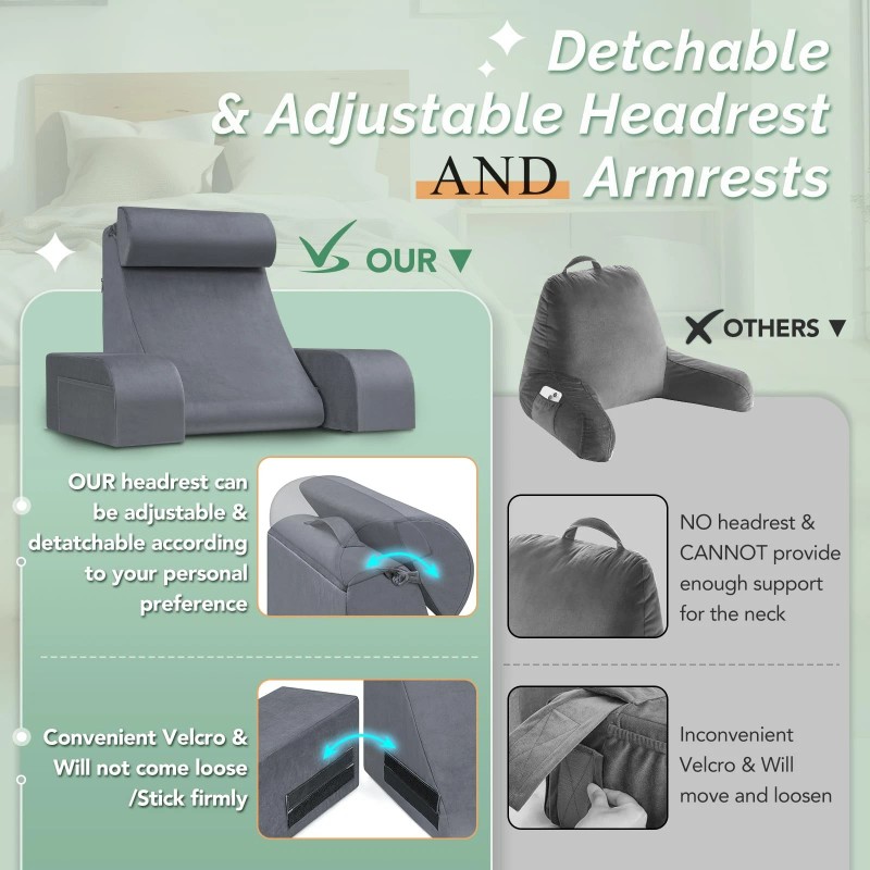 HOME DECOR & EASY CARE: Our reading pillow for bed features super soft dutch velvet for maximum comfort,and makes a great decoration to your cozy room. Besides,when you need to keep it clean, just wash the removable and smooth outer cover in the washing machine