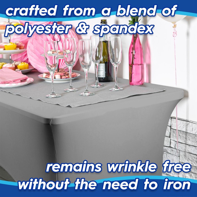 Made from a durable polyester and spandex blend, this tablecloth is designed for practicality and long-lasting use. The fabric maintains a smooth, wrinkle-free appearance, meaning no need for ironing—simply stretch it over your table for an instant clean, polished look. This makes it an excellent choice for high-traffic events or quick setups.
