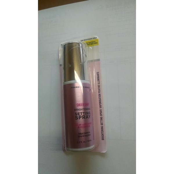 About this item Disclaimer: While we aim to provide accurate product information, it is provided by manufacturers, suppliers and others, and has not been verified by us. See our disclaimer. The Hard Candy Sheer Envy Mattifying No Shine Setting Spray is a weightless setting spray that locks in makeup for up to 12 hours of wear. This special mattifying, no shine formula helps to prevent oil buildup on skin throughout the day, and effectively reduces shine immediately upon application. This powder-infused setting spray selectively absorbs oils and sebum where youre oily, and provides hydration where youre dry, so your skin will look balanced and fresh. The powders also help to blur skin and minimize the appearance of large pores and leaves behind a beautiful matte finish on the skin. Shake well before use and apply on top of your completed makeup look. To apply, close eyes and hold bottle 8-10 inches away from face and spray 2-4 times to evenly set makeup. Spray over foundation, eye shadow, blush and concealer to set your makeup look. This spray can also be used throughout the day to help absorb oil buildup and turn skin matte. Helps set makeup in place for up to 12 hours Indications: Stop Use Indications: Discontinue use if irritation occurs. Directions: Instructions: Hold the bottle 8-10 inches away from your face and mist 2-4 pumps evenly over a completed makeup look. The spray can also be used throughout the day as a refreshing mist for skin that is feeling oily or shiny