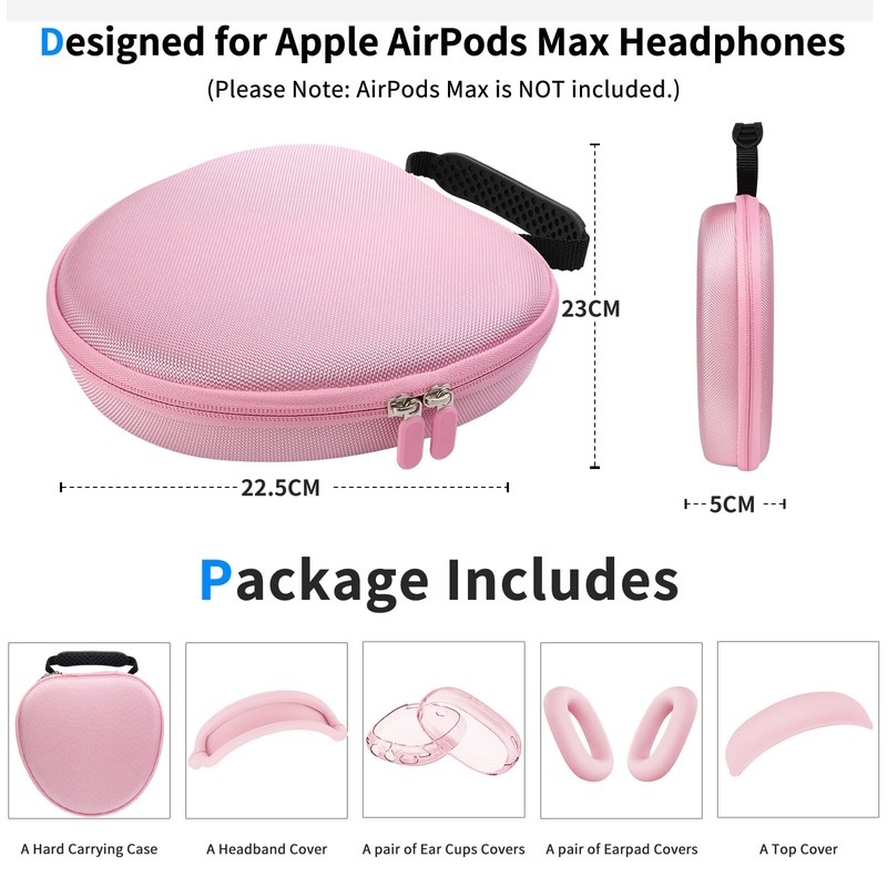 - What You Get: A Hard Carrying Case for AirPods Max, A pair of clear TPU AirPods Max Ear Cups Covers, A pair of Silicone AirPods Max Earpad Covers, A Silicone AirPods Max Headband Cover, A Silicone AirPods Max Top Cover. (Please Note: AirPods Max is NOT included.)