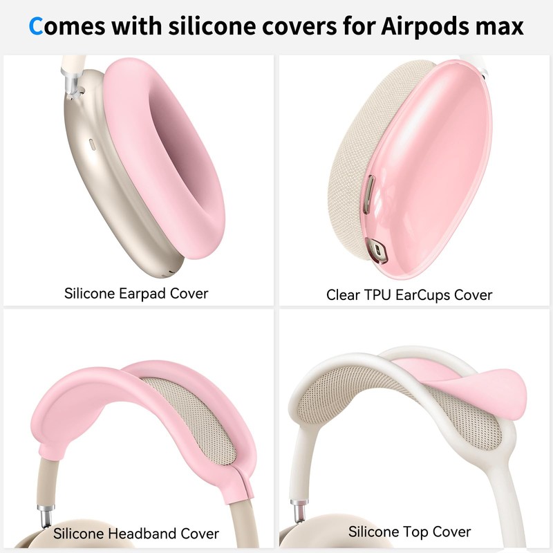 - AirPods Max Silicone/Clear Cover: Comes with Silicone & Clear Covers for Apple AirPods Max. Premium Material. Soft, light and thin headphone covers to minimize daily scuffs, which is very comfortable to the touch. It will not be deformed by kneading and pulling at will, and fingerprints will not be left on the surface.