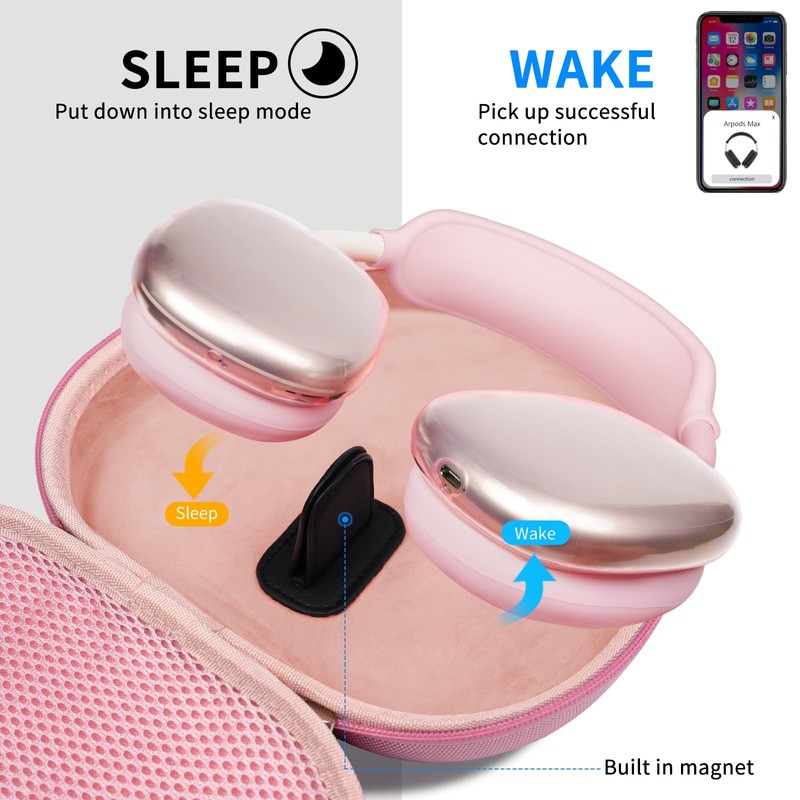 - Supports Sleep Mode: This hard Carrying Travel Headphone Case has built-in magnets. AirPods Max goes into sleep mode when you put it down, and connects successfully when you pick it up. You can also put the middle magnet down flat, along with the original smart case, and your AirPods Max goes into ultra-low power sleep mode. At the same time, comes with silicone/clear Airpods max covers fit the smart case, perfectly fits your AirPods Max Headphones.