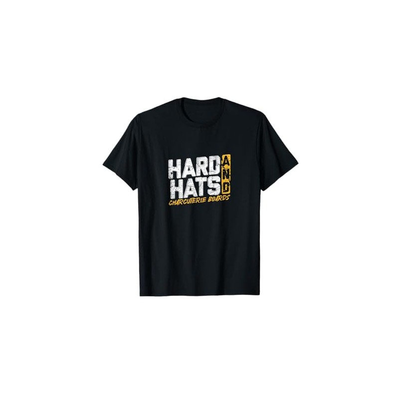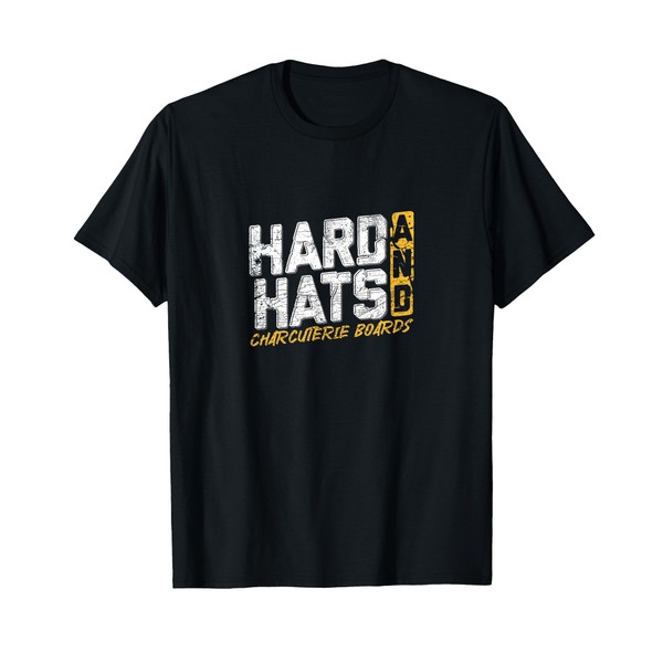 - Celebrate the perfect combination of hard work and good food with this “Hard Hats and Charcuterie Boards” design, featuring bold, distressed typography and playful script accents.