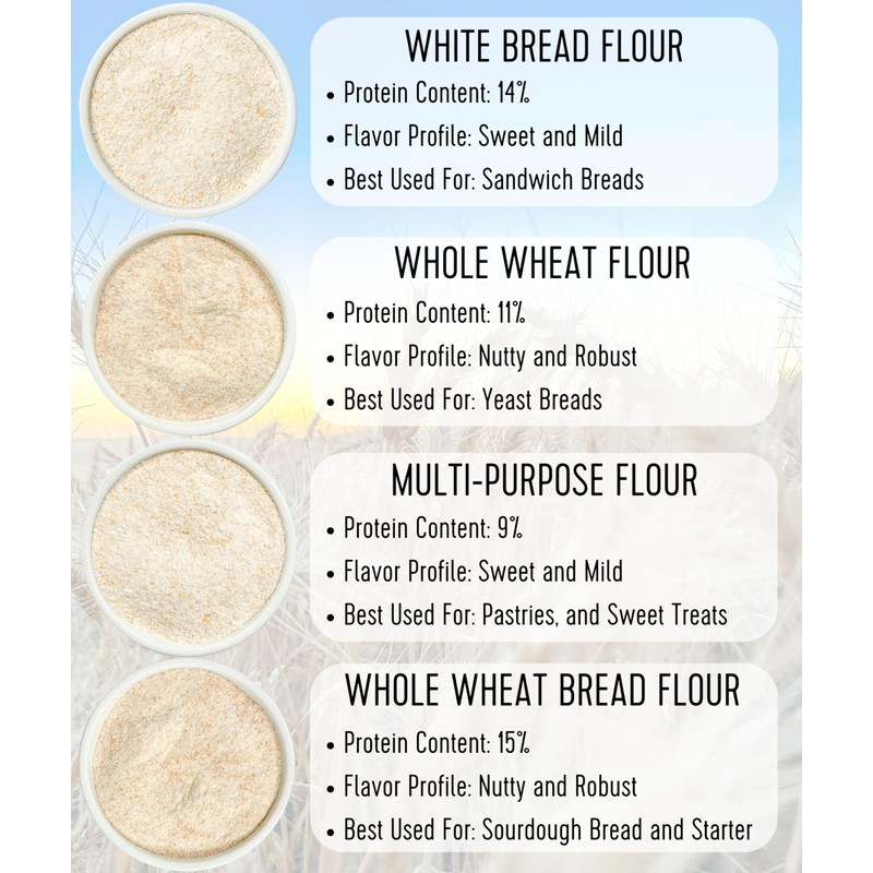 - SINGLE INGREDIENT FLOUR: This Flour does have a shorter shelf life, as we do not add any preservatives and we do not remove any of the natural oils in the wheat berry, making it a premium flour with the freshest quality.