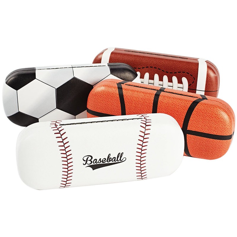 Protect your child's expensive eyewear in style with these sports ball themed hard shell eyeglass cases. The exterior features a printed finish of four different sports: Basketball, Football, Soccer, and Baseball. Each stylish case is of quality construction and has a strong metal hinge to keep your frames safely inside. The inside is lined with a matching plush styrene to help keep your lenses protected from scratches. Case fits easily inside a backpack or pencil bag for use at school. Exterior dimensions: 6.13 inches long, 2.5 inches high, and 1.25 inches deep. Interior dimensions: 5.5 inches long, 2 inches high, and 1 inch deep. These cases make the perfect accessory for any pair of children's small eyeglasses, reading glasses, or sunglasses. Hand packed with care in Dallas, Texas.