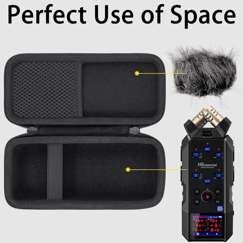 - Built-in mesh pocket can hold up microphone fur windscreen windshield for h6essential recorder and USB charging cable, you can easily store and carry the h6 essential zoom recorder at anywhere.