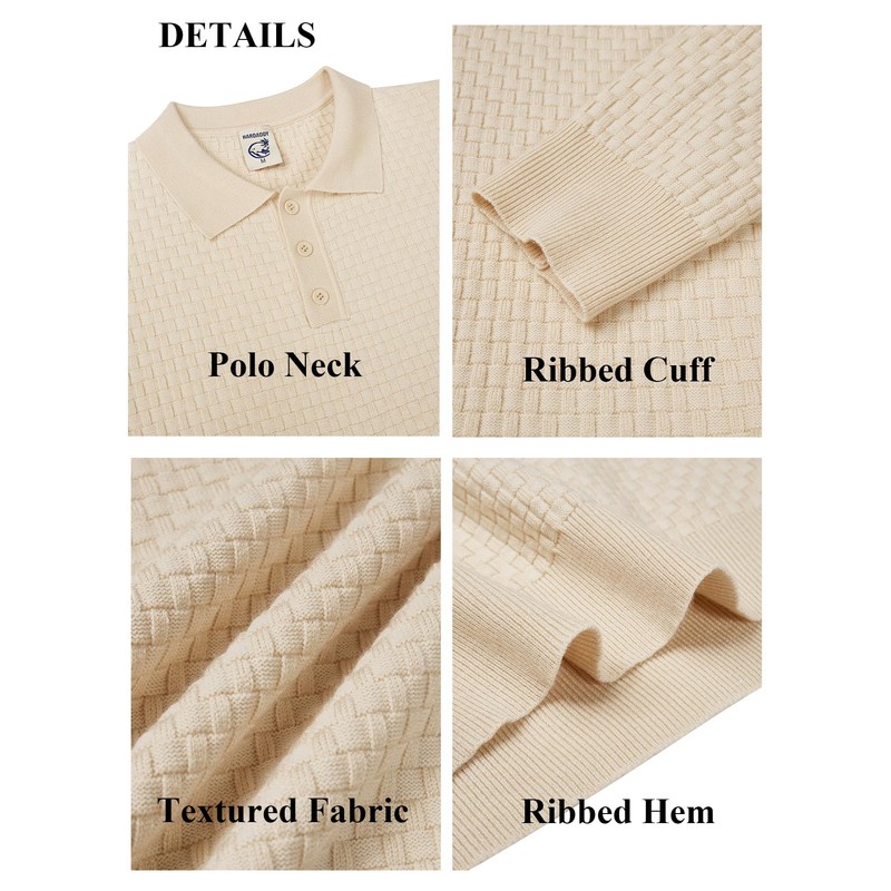 Hardaddy Men's Knit Polo Shirts Long Sleeve Button Up Pullover Sweater Textured Casual Collared Tops Apricot S
