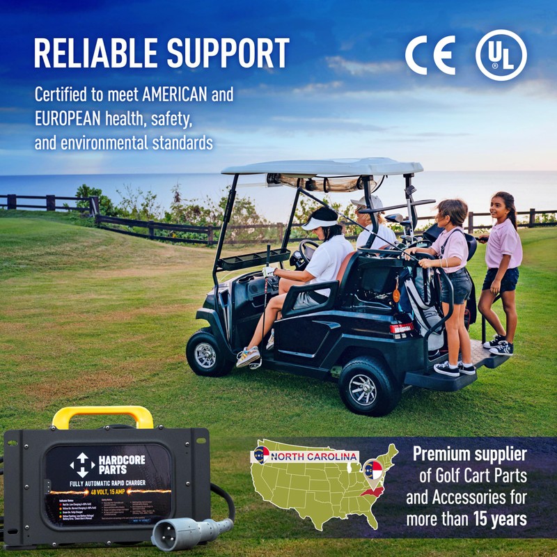 Smart Charging Technology. Hardcore Parts Fully Automatic Rapid Chargers feature high-amperage Smart Charging Technology, which check your golf cart batteries in real time and adjust the amperage that’s needed to both prolong battery life and get you back behind the wheel quickly.