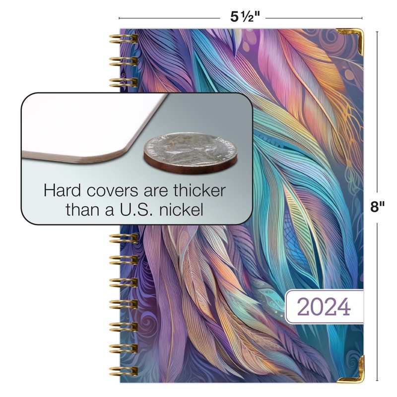 HARDCOVER 2024 Planner: (November 2023 Through December 2024) 5.5"x8" Daily Weekly Monthly Planner Yearly Agenda. Bookmark, Pocket Folder and Sticky Note Set (Pastel Peacock)