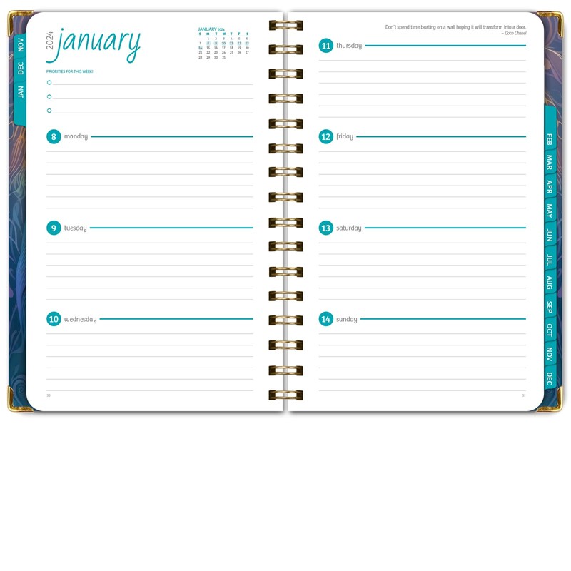 - 2 Page Monthly Spreads followed by 2 Page Weekly Spreads