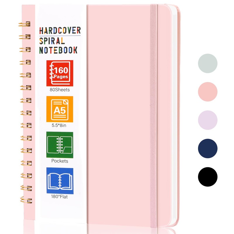 - 【Hardcover Journal Notebook】The lined spiral journal notebook features water-resistant vegan cover. A5 small size 5.5 x 8in , perfect for carrying around or put into your bag. 160 pages notebooks inner expandable pocket, provide you ample space to write
