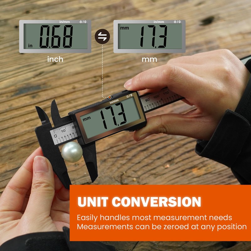 - Unit conversion and larger LCD screenQuickly switch between inches (inch) and millimeters (mm). Featuring a large, easy-to-read LCD display, it's easy to use and read even in bright sunlight.