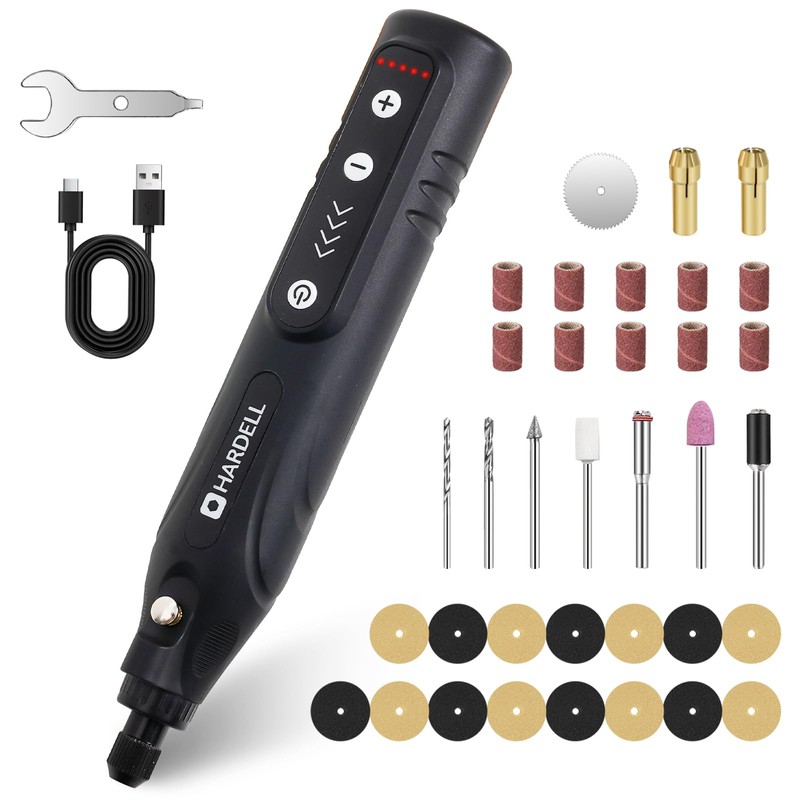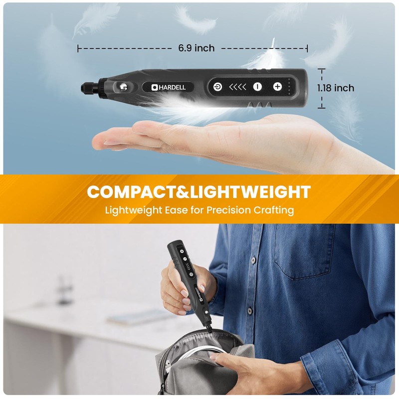 - 【Versatile Use】 -This HARDELL rotary tool, equipped with a variety of high-quality bits and accessories, expertly handles grinding, polishing, intricate engraving, sanding, drilling, and other small DIY tasks on a variety of materials, including wood, plastic, and resin. No need for multiple tools! Easily tackle jewelry making, model making, home repairs, and art projects with convenience.
